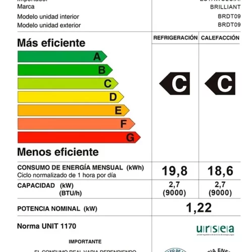 Descubre el Aire Acondicionado Brilliant 9000 BTU On/Off BREC09, una solución eficiente para mantener un ambiente cómodo en tu hogar u oficina. Con una capacidad de refrigeración de 9.000 BTU, este aire acondicionado ofrece un consumo energético optimizado, con un EER de 2.81 y un COP de 3.22, lo que garantiza un rendimiento eficaz. Su diseño compacto, con dimensiones interiores de 76 x 35 x 28 cm, y un peso ligero de 7 kg, facilita su instalación. Además, cuenta con un nivel de ruido de solo 40/51 dB(A), asegurando un funcionamiento silencioso. Este modelo utiliza gas R-410, un refrigerante ecológico, para asegurar un bajo impacto ambiental. Perfecto para quienes buscan una climatización eficaz, el BREC09 es la elección ideal para cualquier espacio.
